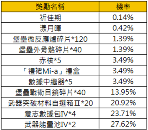 獎池內可以開出以下獎品: