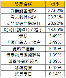 3.此活動獎池為有限池,抽取次數上限為15次。抽取次數到達上限時可獲得所 有獎池獎品。獎池內可以開出以下獎品: