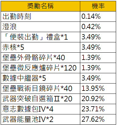 3.此活動獎池為有限池,抽取次數上限為15次。抽取次數到達上限時可獲得所有獎池獎品。獎池內可以開出以下獎品: