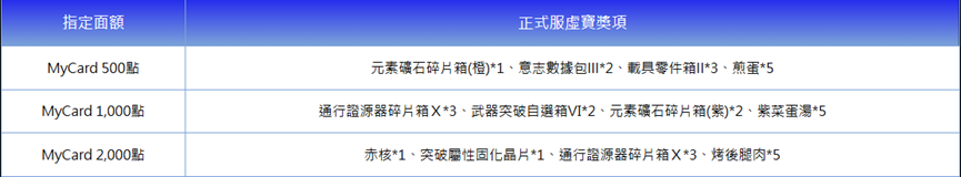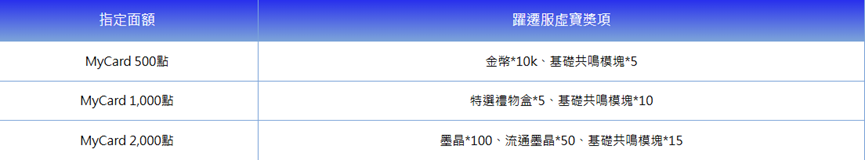 在活動期間內,至下列配合通路購買指定面額,並成功儲值進遊戲中,即可獲得相對應虛寶獎勵回饋呦!