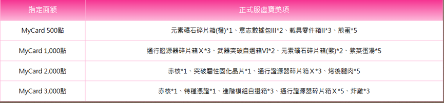 在活動期間內,至下列配合通路購買指定面額,並成功儲值進遊戲中,即可獲得相對應虛寶獎勵回饋呦!