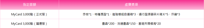 在活動期間內,至下列配合通路購買指定面額,並成功儲值進遊戲中,即可獲得相對應虛寶獎勵回饋呦!
