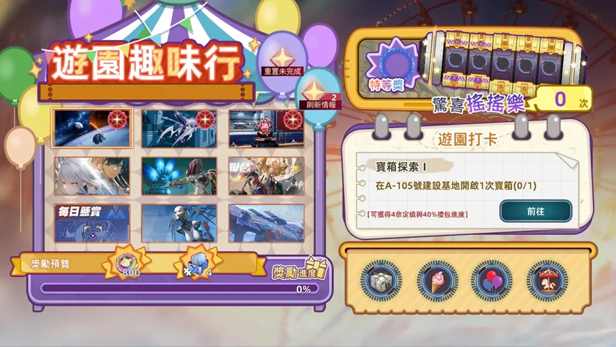 活動說明:使用鈦晶轉動羅盤時會累積進度,當進度條累計滿時可領取對應獎勵,每期活動獎勵進度條只能累計滿一次。