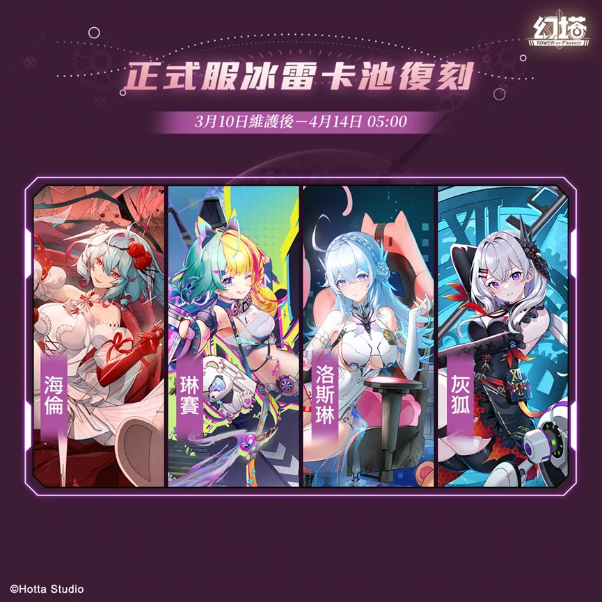 活動說明:活動期間內,將開啟4個擬態造型復刻,分別為:海倫「詭秘布偶」、琳賽「寂宇尋花」、灰狐「扮裝遊戲」以及洛斯琳「出勤時刻」。