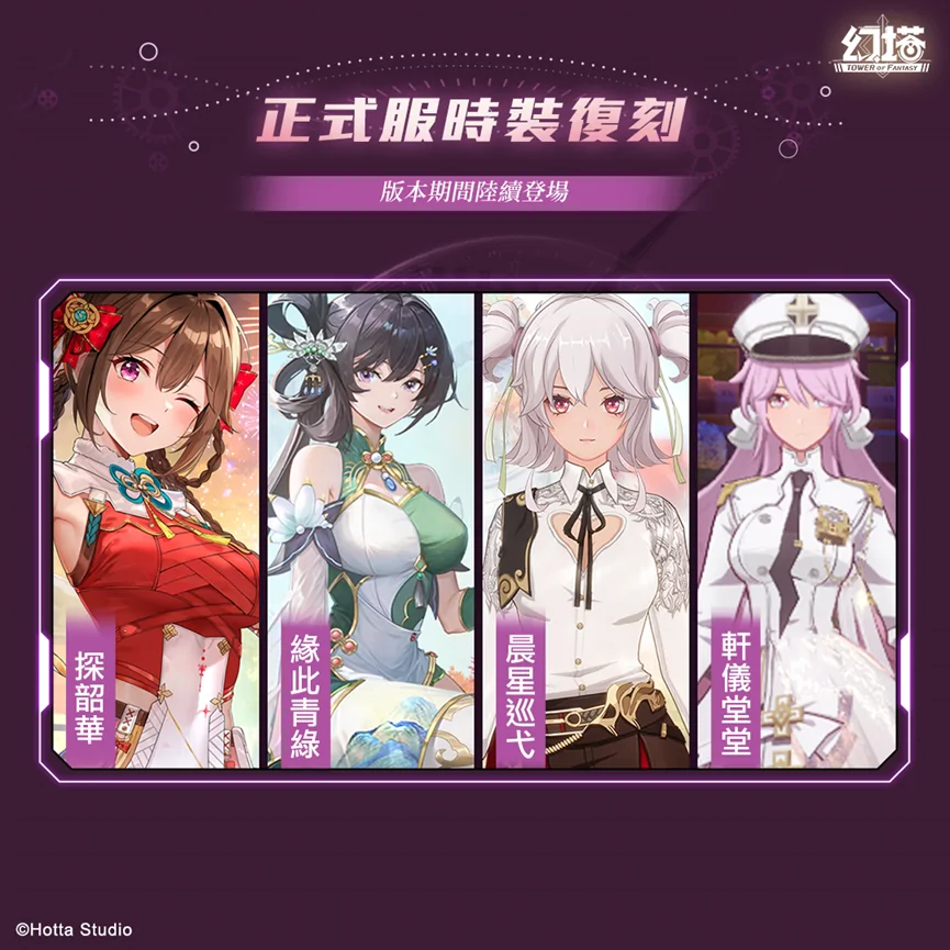 活動說明:版本分兩階段開啟共4個時裝復刻扭蛋機,每次扭蛋花費隨抽取次數依次增加,上限15次即可拿滿全部獎勵。